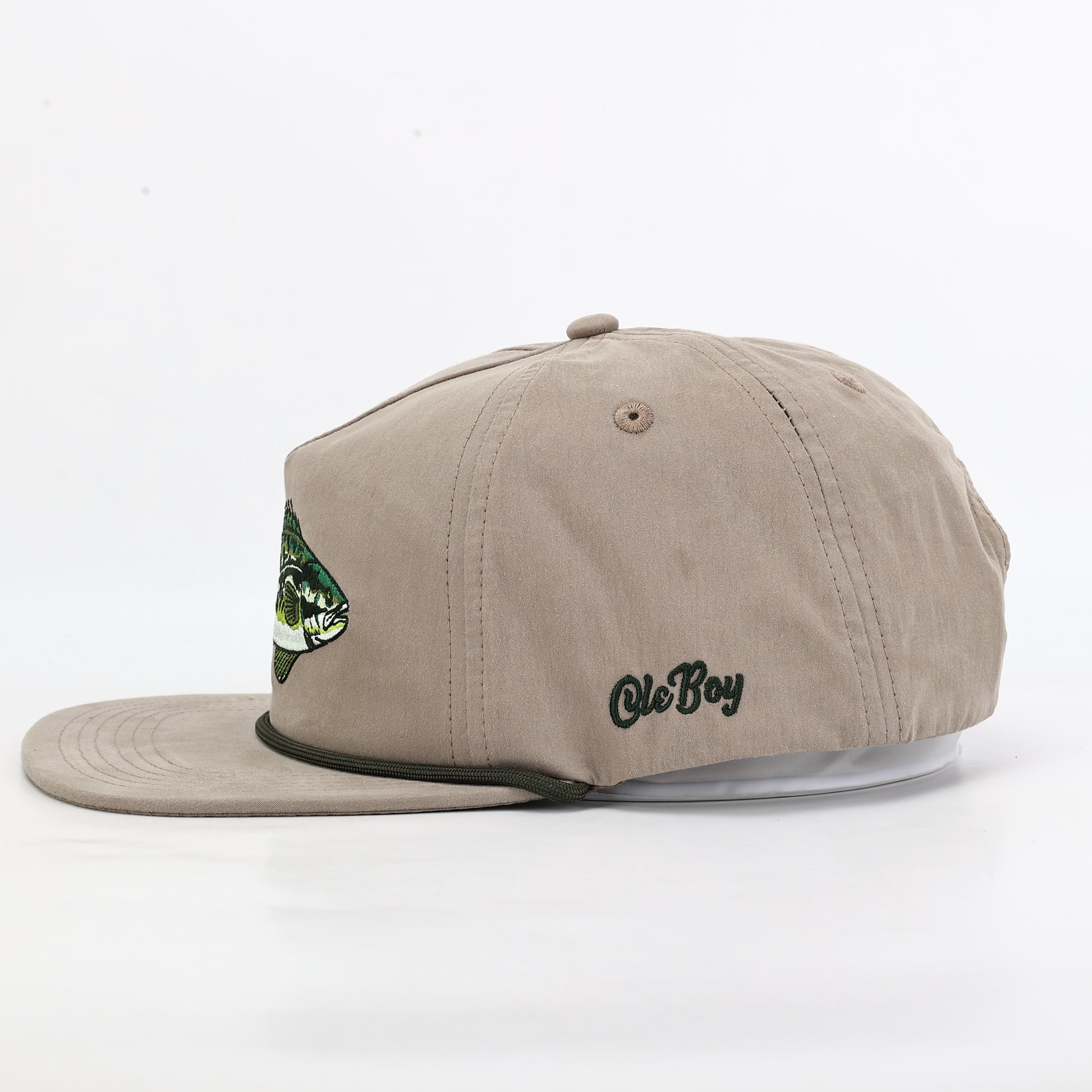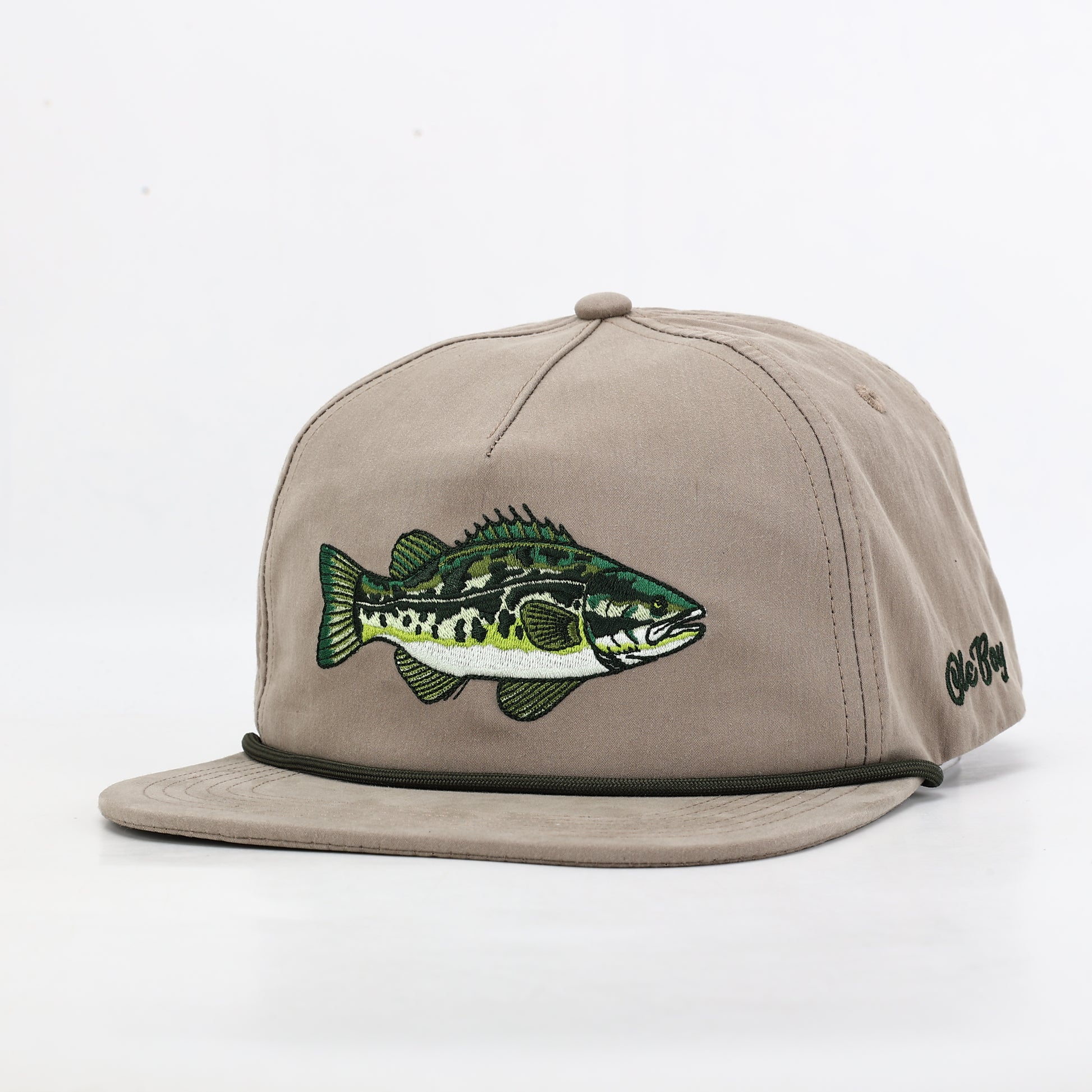 Stand out on the water with the OLE BOY Bass Rope Hat. This 5-panel design features an eye-catching embroidered bass on the front and the iconic Ole Boy logo on the side. Built from a durable 70% cotton and 30% nylon blend with soft-structured construction and reinforced flip-down mesh support, it keeps you comfortable all day. UPF 50+ protection shields you from the sun, while the adjustable snapback closure ensures the perfect fit every time.