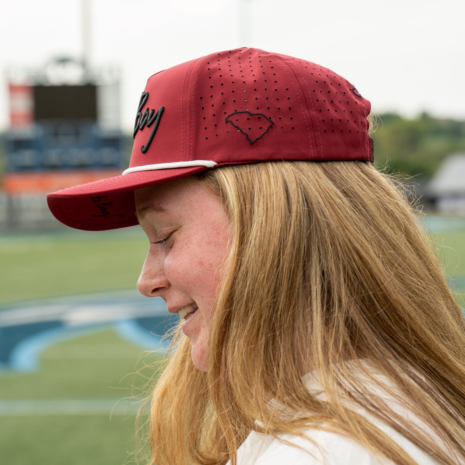 Be game-day ready with the Ole Boy Columbia Game Day Performance Golf Hat. Embroidered with "Columbia" on the back and the state of South Carolina on the side, this hat shows your love for Columbia and your state pride. Featuring our trademarked "What's up Ole Boy!" on the bottom of bill, Its advanced design and lightweight materials ensure ultimate comfort and breathability. Perfect for football games, golf, or casual wear. It's the ultimate accessory for any ole boy.