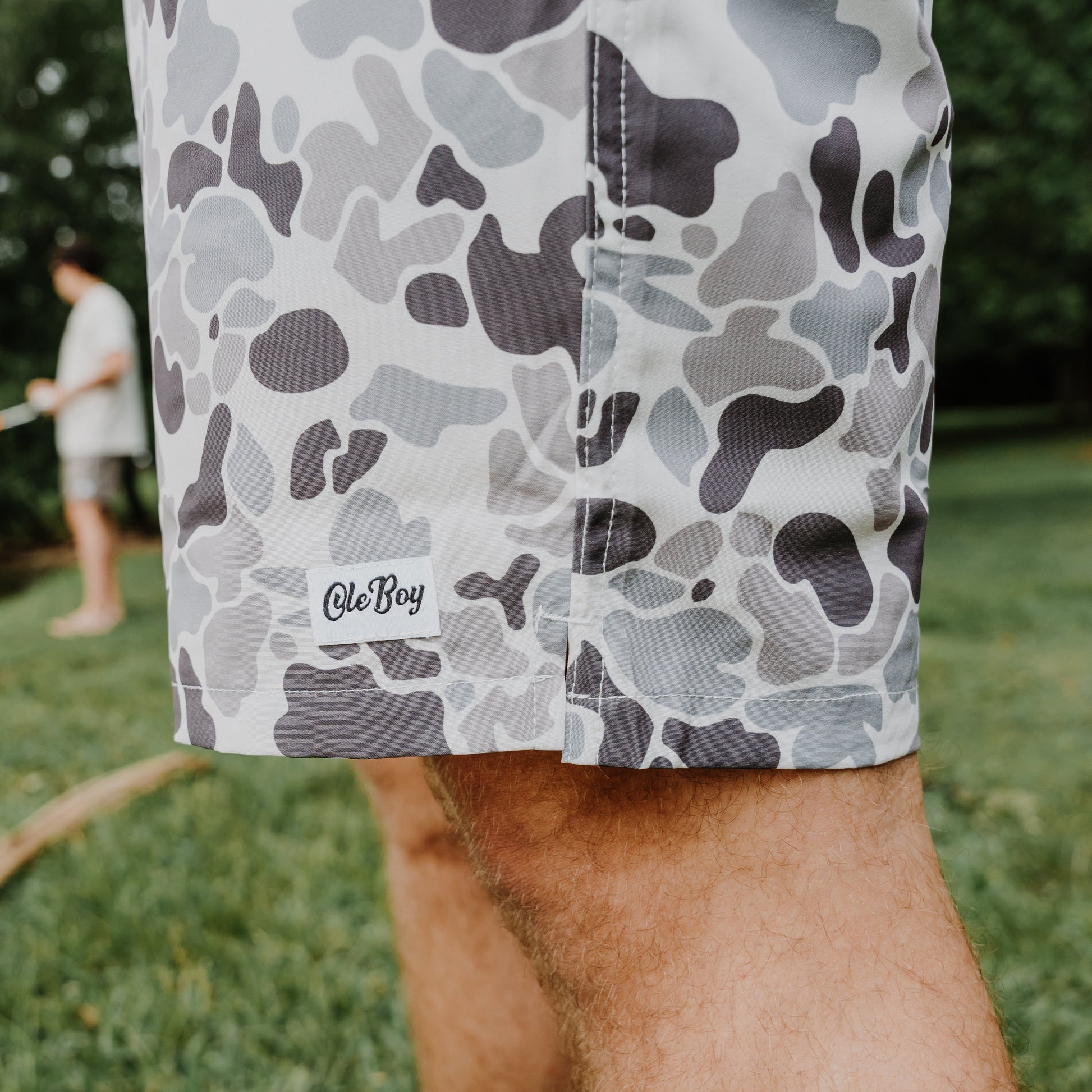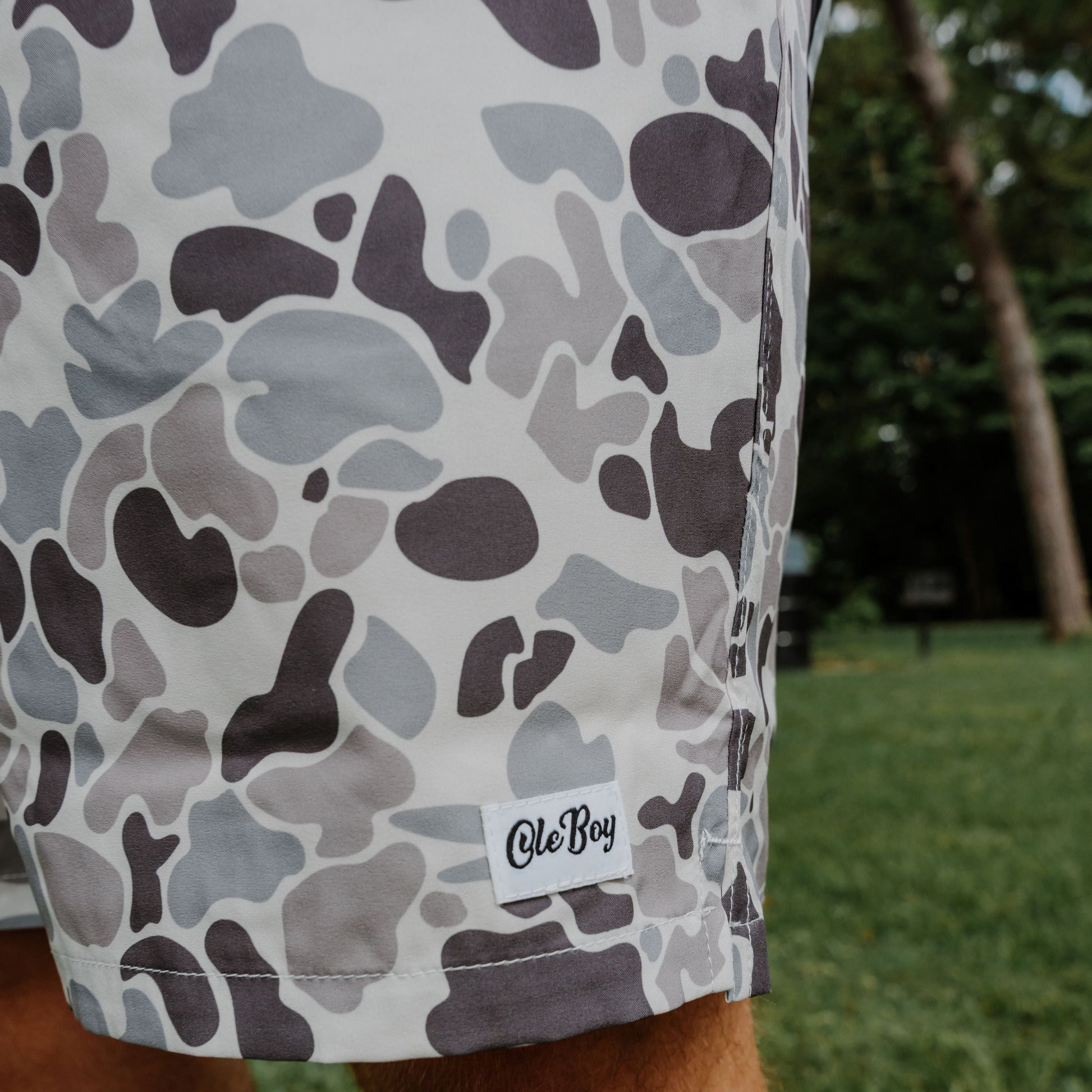 Experience versatile comfort with the OLE BOY Everyday Short in Grey Camo. Whether you're lounging by the lake, hitting the pool, or heading out for the evening, these shorts are the perfect choice. Stay cool and stylish all day long with OLE BOY.