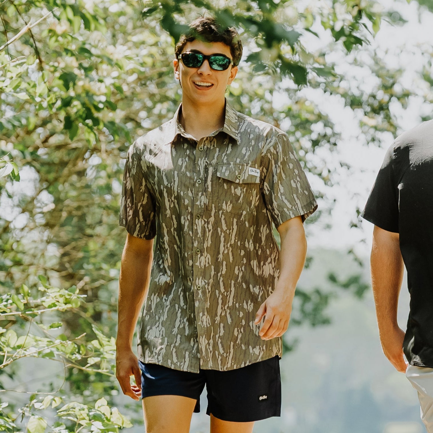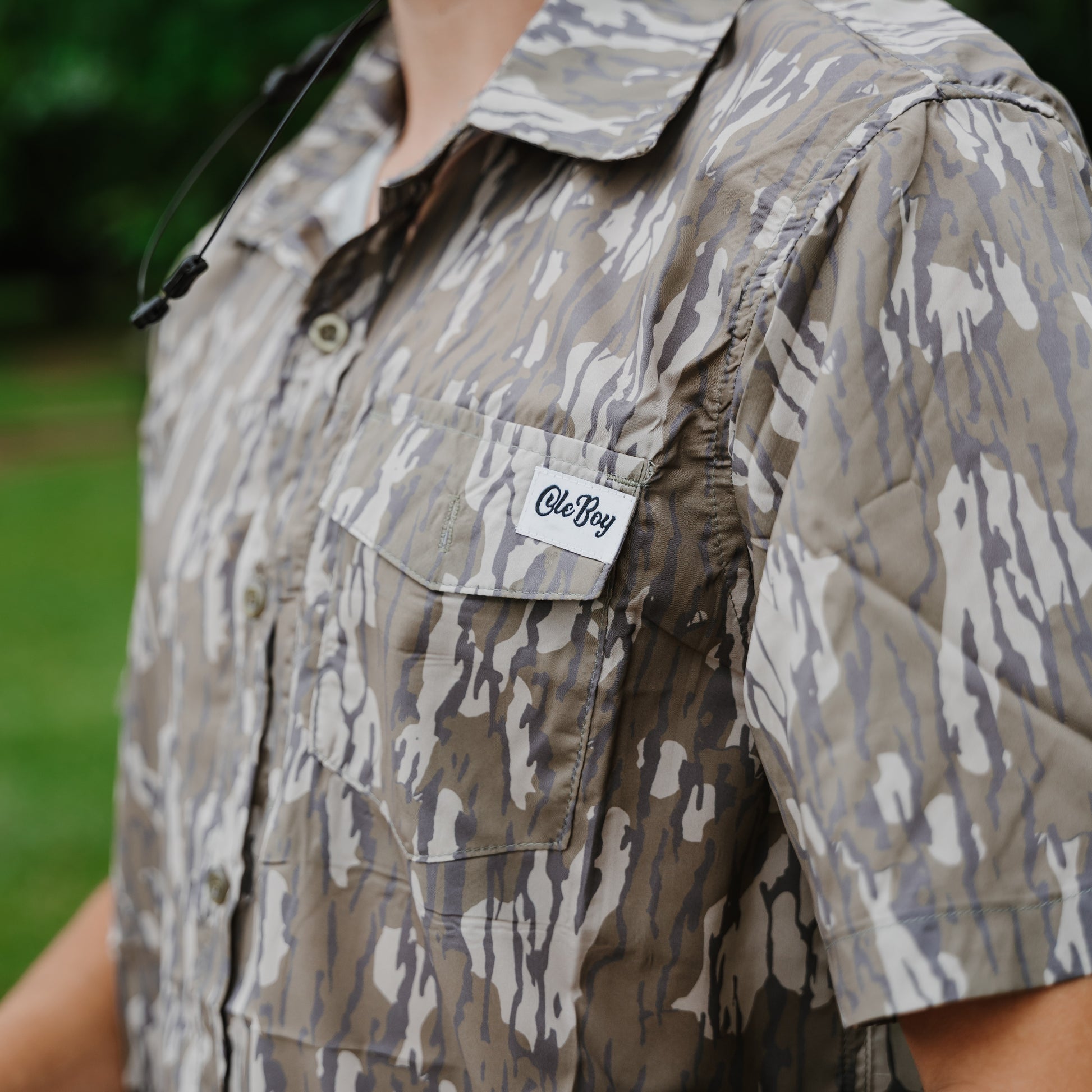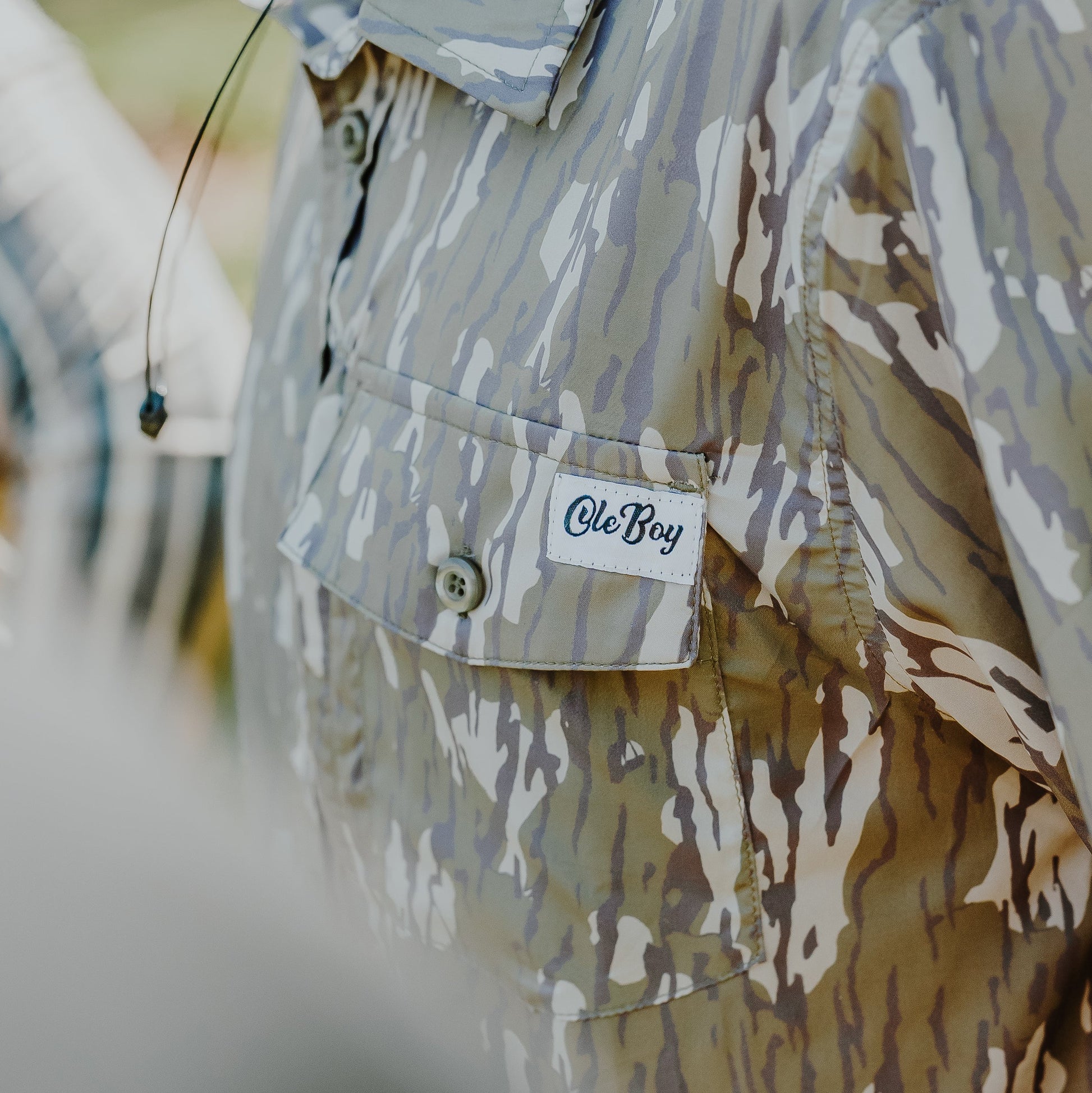 OLE BOY Performance Button Up Fishing Shirt - Bottomland Camo