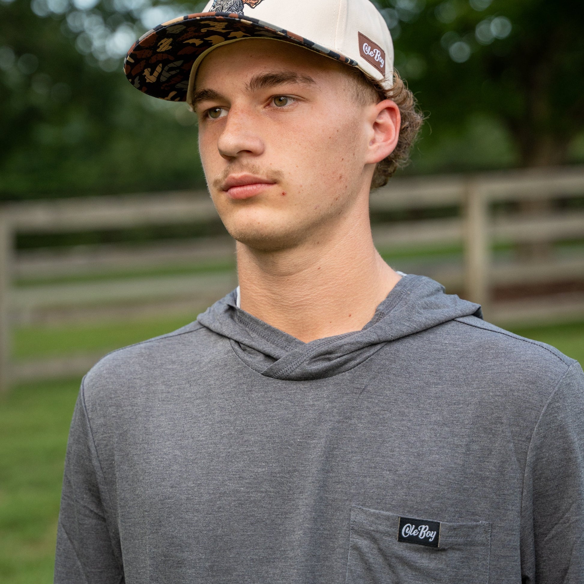 Experience ultimate comfort and protection with the OLE BOY Performance Hooded Tee in charcoal. Crafted from a super soft rayon blend, this tee is perfect for long days on the water, offering lightweight sun protection and breathable performance. Whether you're fishing or enjoying the outdoors, you'll stay cool and comfortable.